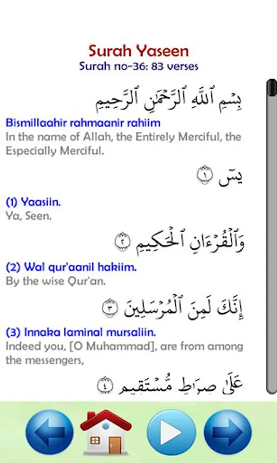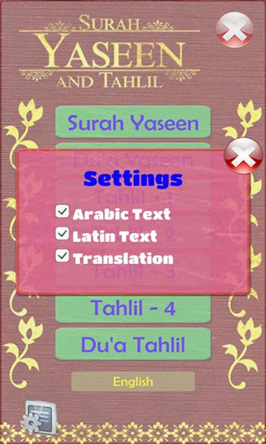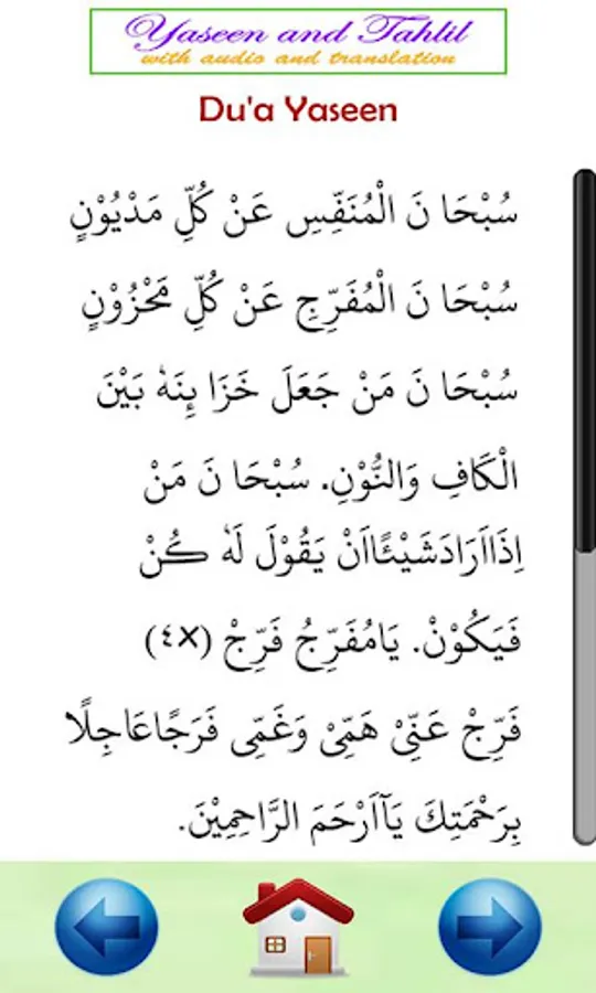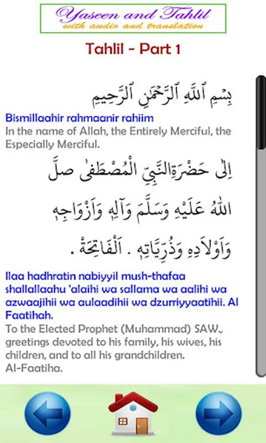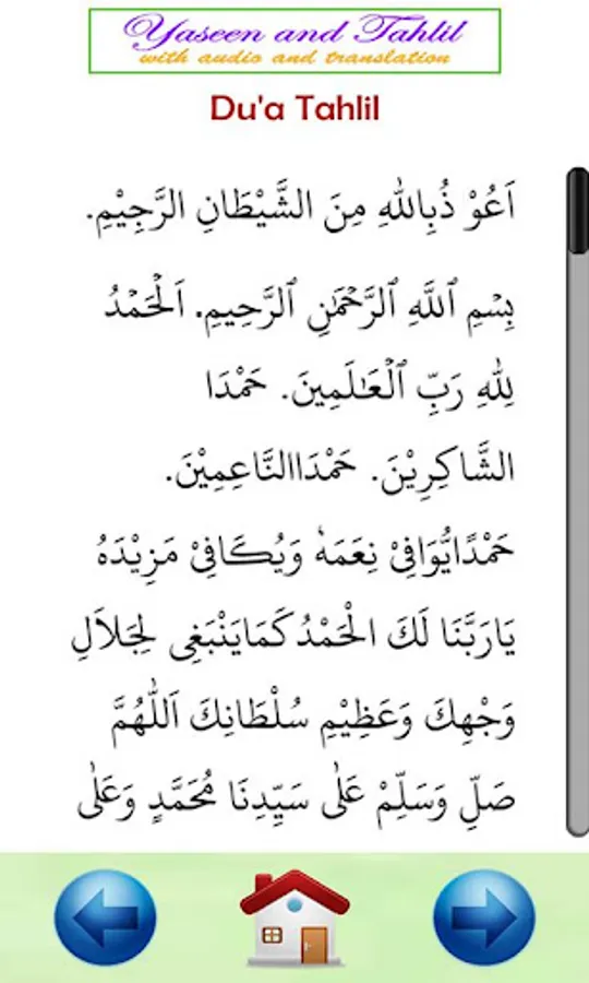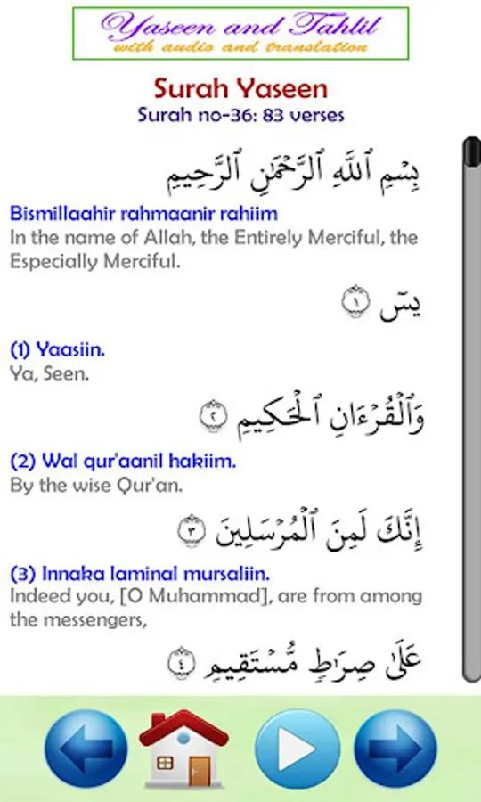 Surah Yaseen (yaasiin/yasin) and Tahlil complete with translation. Surah Yaseen and Tahlil supports 3 languages and translations: English, Indonesian, and Malay.
