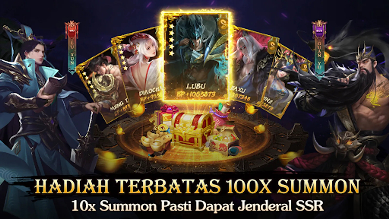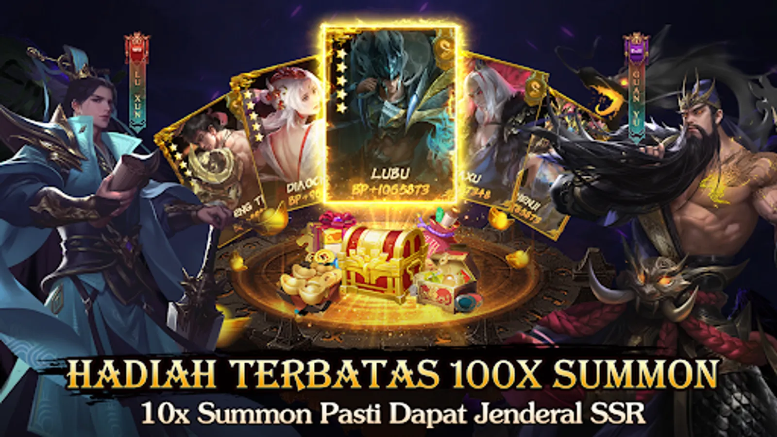 Get Epic Items, Coins and Enhance Items to SSR Generals easily from 10x Free Summons and events for new players! Many Daily Packages and Event Packages plus attractive item prizes. The more you play the more prizes!