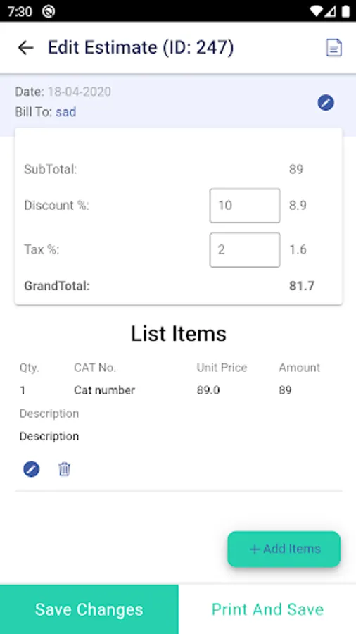This application is used for creating Estimates, Delivery chalans, and repair memos of Micro Surgical Instruments made by Indo German and GSM Surgicals