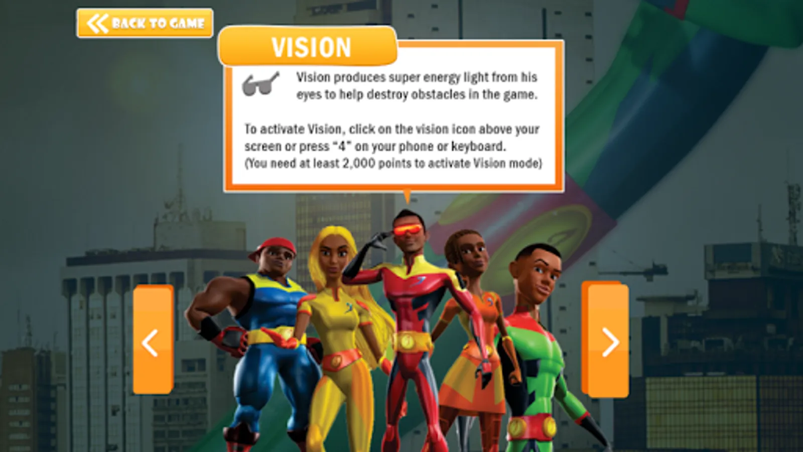 Press on the Character icon to initiate their powers, please note that you need a minimum of 2,000 points to activate their various abilities.