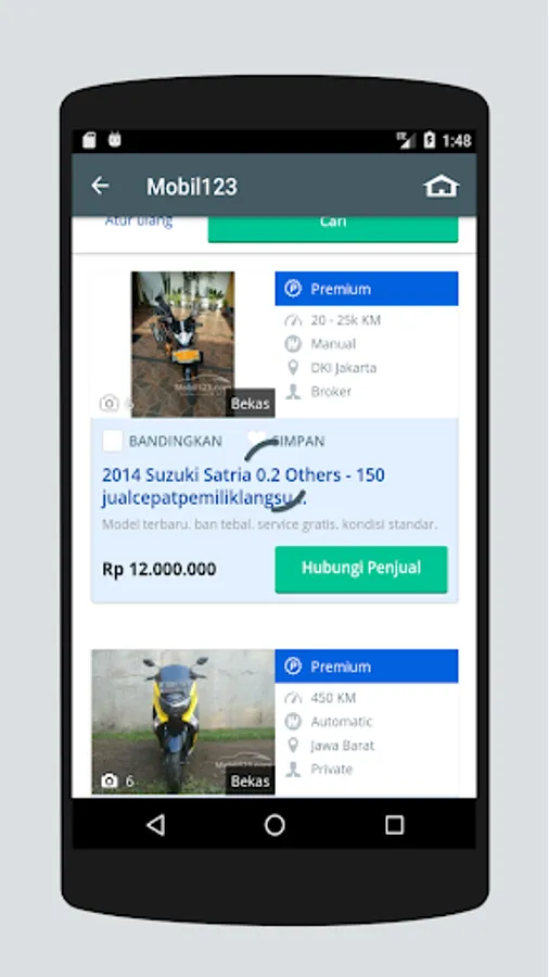 Do you want to buy a new or used motorcycle in Indonesia? Instead you can buy easily from our applications which include thousands of new and used bicycle ads that exist in your country. This application provides a simple method for buying and selling used motorcycles, scooters and quads from all over Indonesia online.