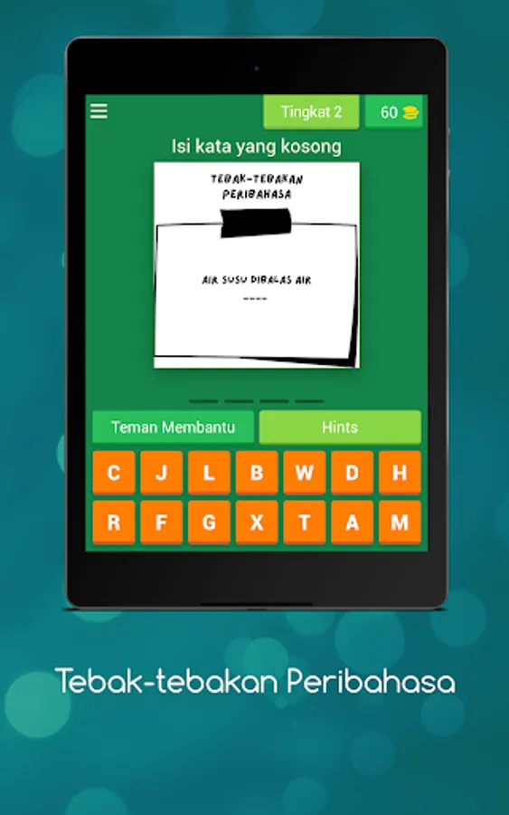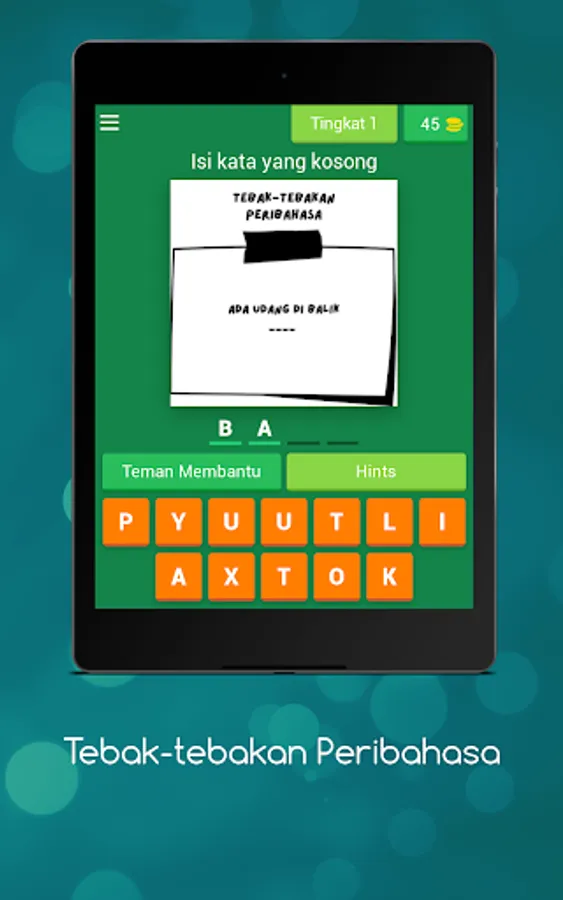 Guess Proverbs with the theme of a simple quiz that provides knowledge about proverbs. The user will guess which one of the words is less than the proverbs provided. This Guessing Game has provided several levels that must be completed.