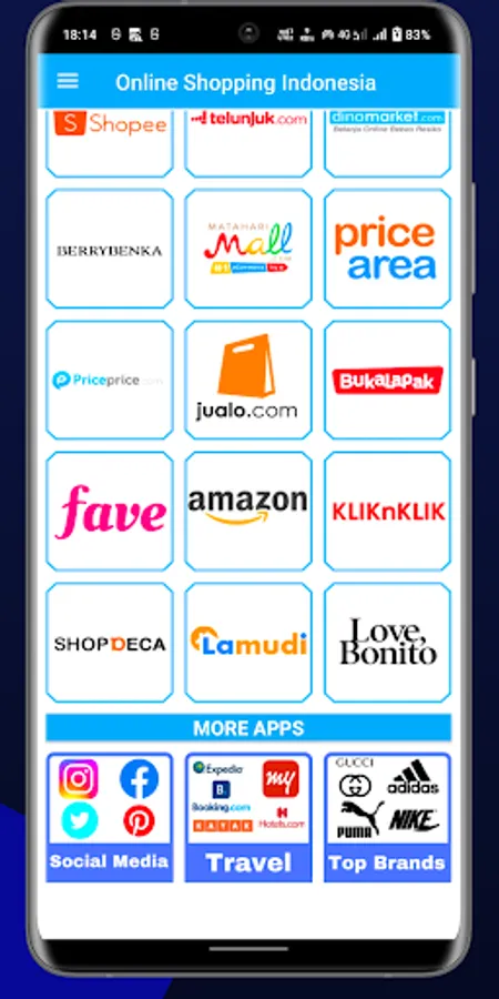 Indonesia Shopping App - Online Shopping Indonesia Has Listed Top Online Shopping Sites Like Zalora, Lazada, Tokopedia, Qoo10, Indonetword, JD, Olx, Shopee, Bhinneka and Much More Online Shopping Sites Listed On Indonesia Shopping App.