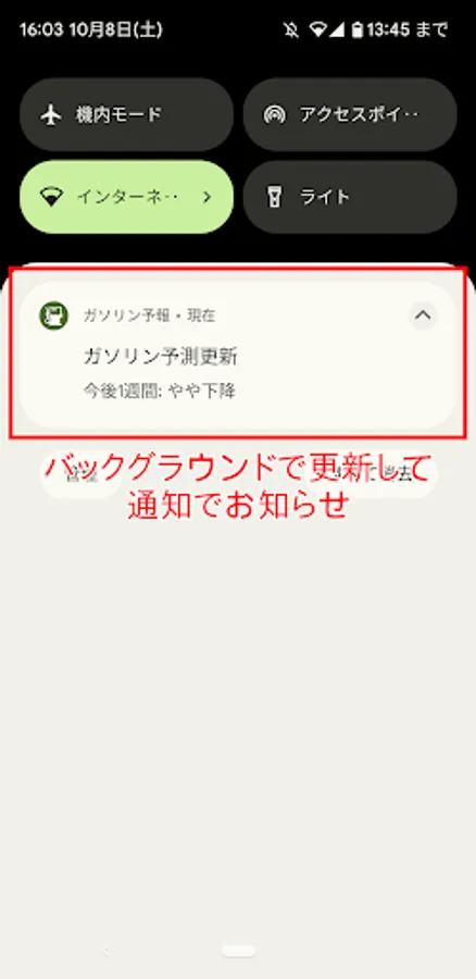 There is also a function that periodically makes predictions in the background and notifies you, so you can not miss the chance to get cheaper. (It will be disabled after restarting the smartphone, so you need to manually start the app once.)