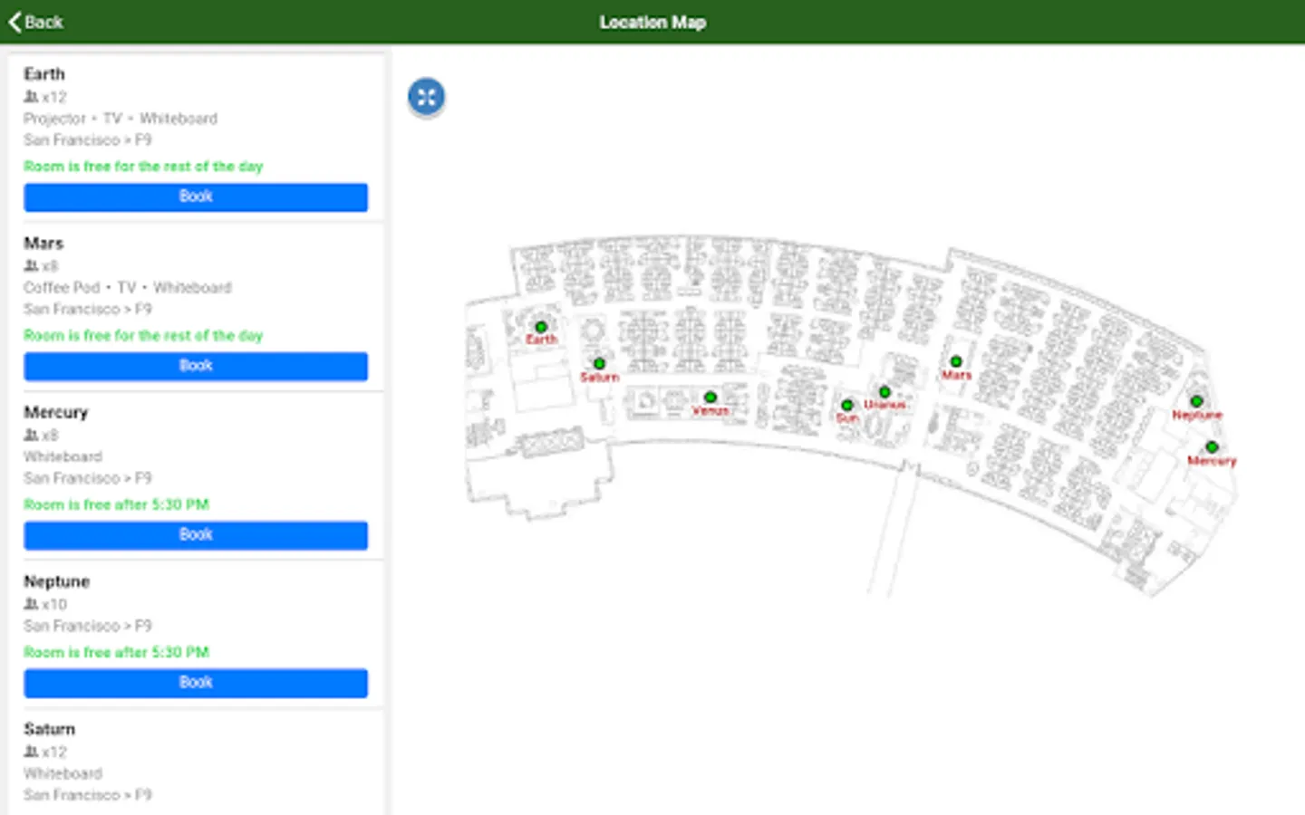 - Use this app on a tablet mounted outside of the conference room for a quick display of daily room events and reservations.