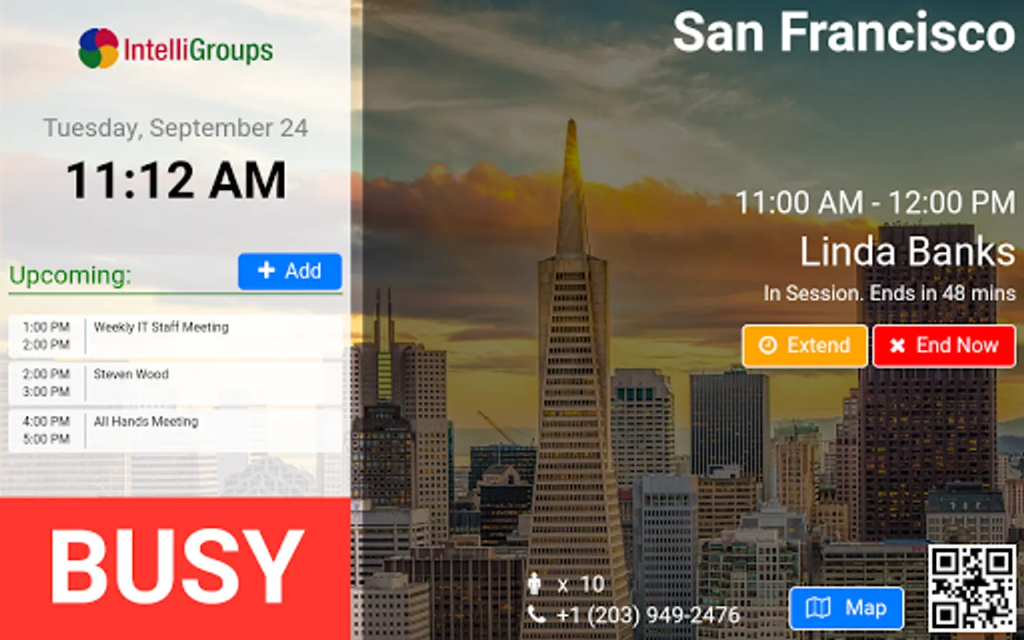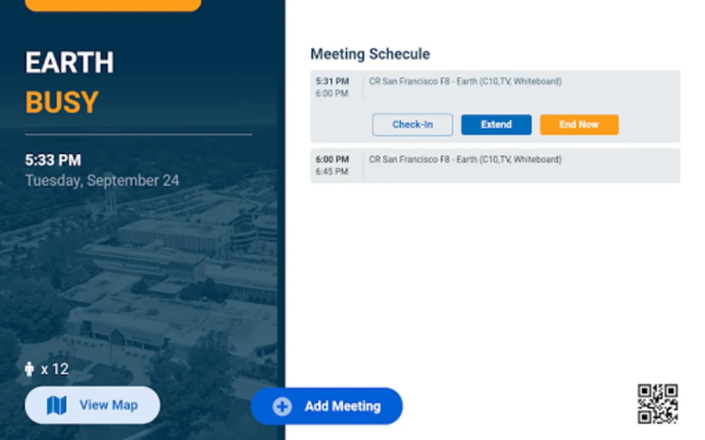 - User can book the room directly from the panel, as well as enforcing "check-in" to reduce no-shows.