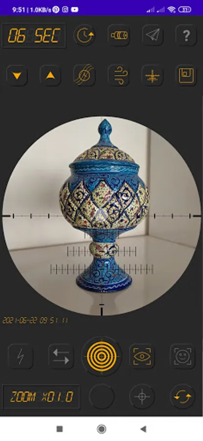 SniperScope adds captured images to your Android system gallery automatically . so you can see the photos in gallery too . Timer button lets you take selfi photo easily and TimeStamp button lets each photo has printed date and time .