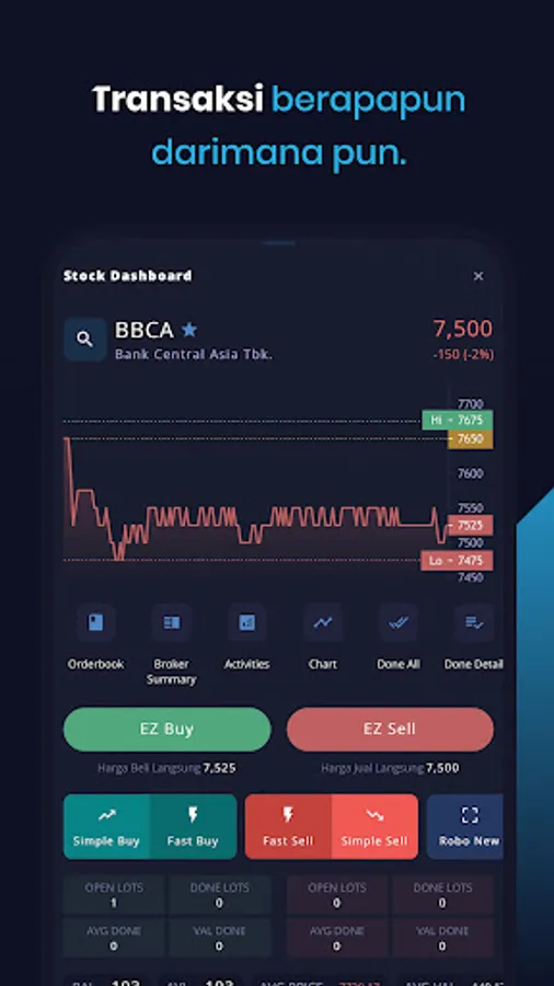 You can make multi-order transactions with the fast buy / sell feature at any price & quantity simultaneously. You can also access the transaction features from any screen.