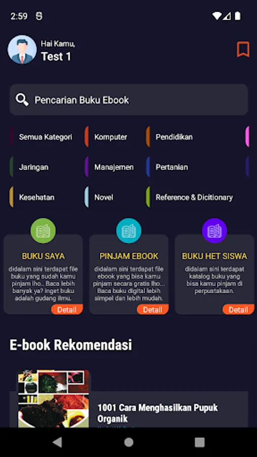 Indopustaka is a digital library that has more than 10,000 e-book titles with hundreds of categories provided. With complete features, it makes it easy and fast for students to meet the needs of the learning process.