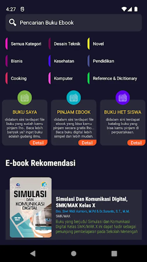 Indopustaka is a digital library that has more than 10,000 e-book titles with hundreds of categories provided. With complete features, it makes it easy and fast for students to meet the needs of the learning process.
