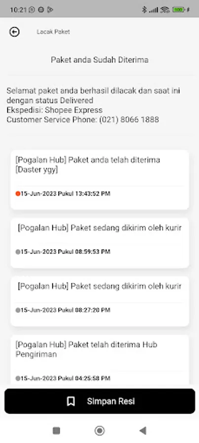SiCepat express receipt check application.
