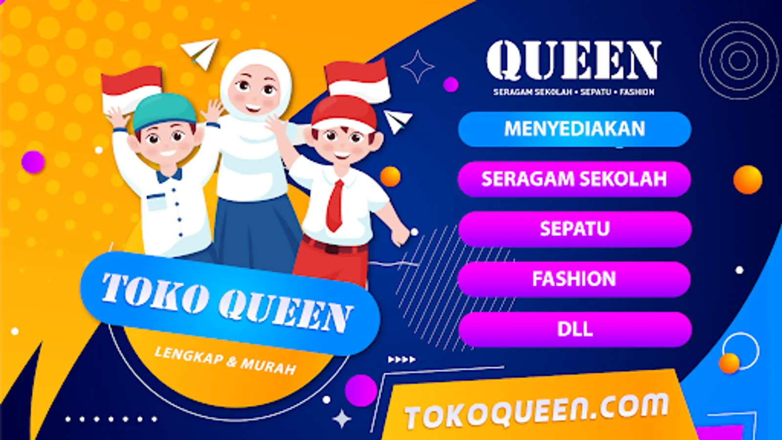 Queen's shop sells a variety of school, office, and government uniforms. Provide a variety of elementary, junior high and high school / vocational school uniforms and accessories such as hats, ties, belts, shoes, kacu, socks, Scout shirts, sports suits, UKS shirts, jackets, alma mater jackets, red and white flags, school locations, emblems student council, scout accessories and others.