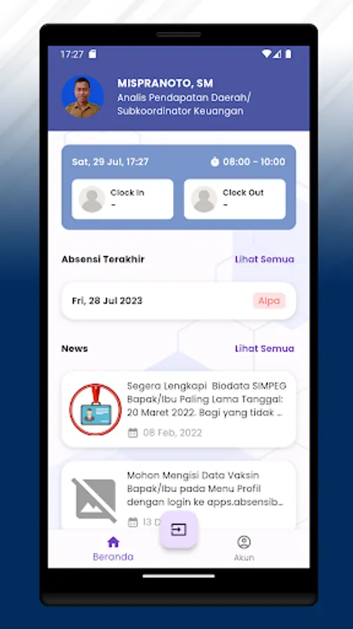 The Batu Bara Regency E-Absence application is an application that can make it easier for civil servants in Batu Bara Regency.