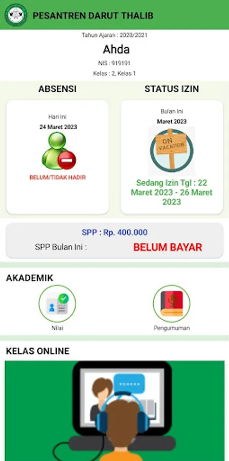 The Darut Thalib Islamic Boarding School application is a monitoring and communication medium between the Darut Thalib Islamic Boarding School and the Santri Guardians, so that the Santri Guardians can see the progress of their children's activities at the Darut Thalib Islamic Boarding School.