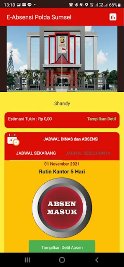 An attendance application for all South Sumatra Police personnel that is integrated with the calculation of performance allowances
