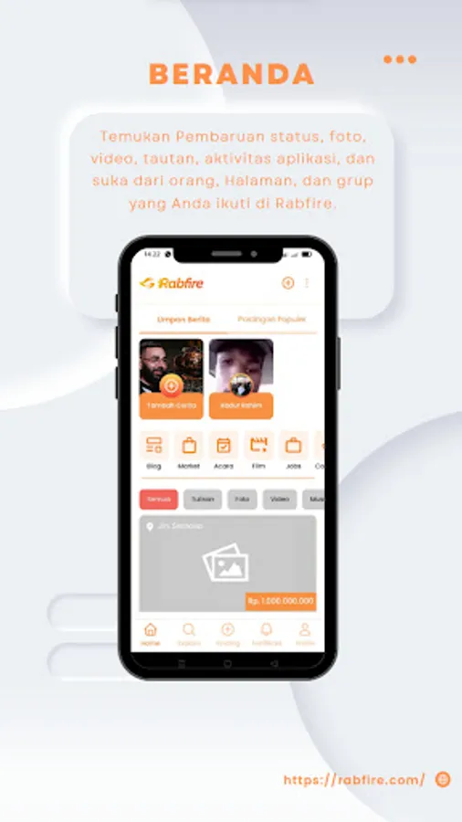 Rabfire is an application or platform that is used to express oneself and perform various forms of interaction with other people. You can communicate with your friends, look for products you need on the market, find jobs according to your abilities, do lots of fun things like watching movies, reading blogs, doing live, and many other exciting things here. Not only that, Rabfire also offers various pro features that can make your experience more enjoyable!