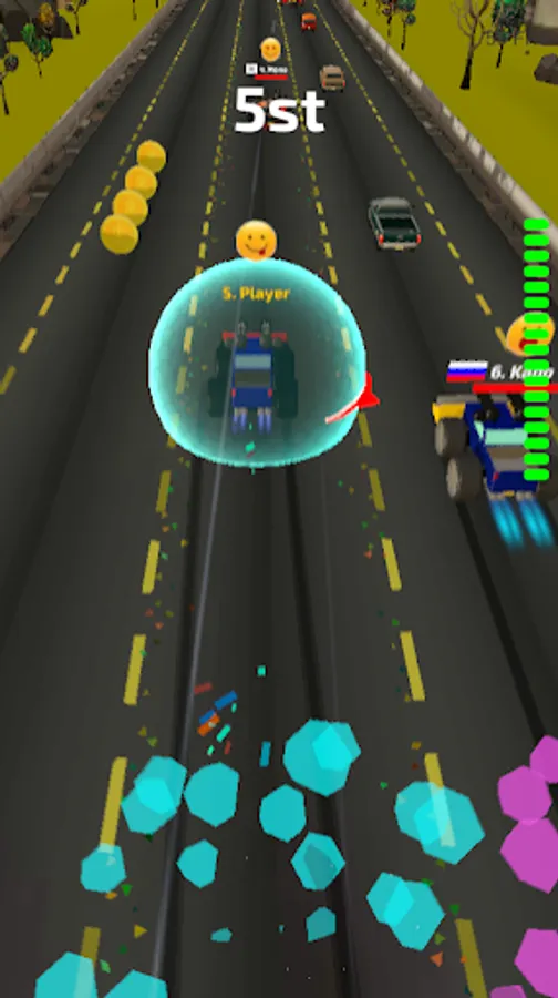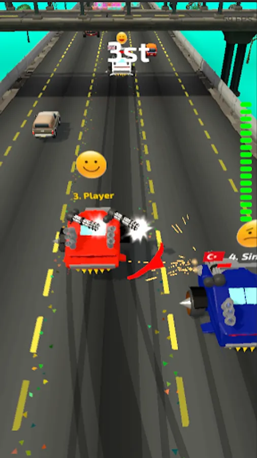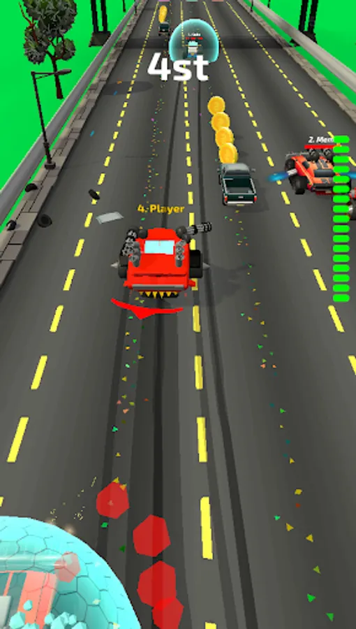 Speed by crushing cars to win the race. Collect objects, fight and be the first.