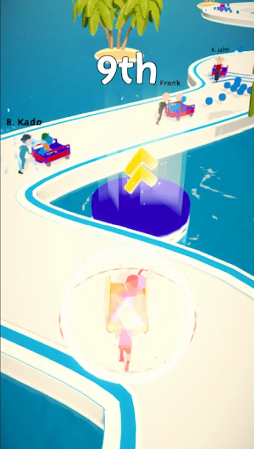Collect water balls and throw them at your opponents to slow down your opponents. Collect shields on the ground to protect yourself from water balls. Cheat and bounce yourself to outdo everyone.