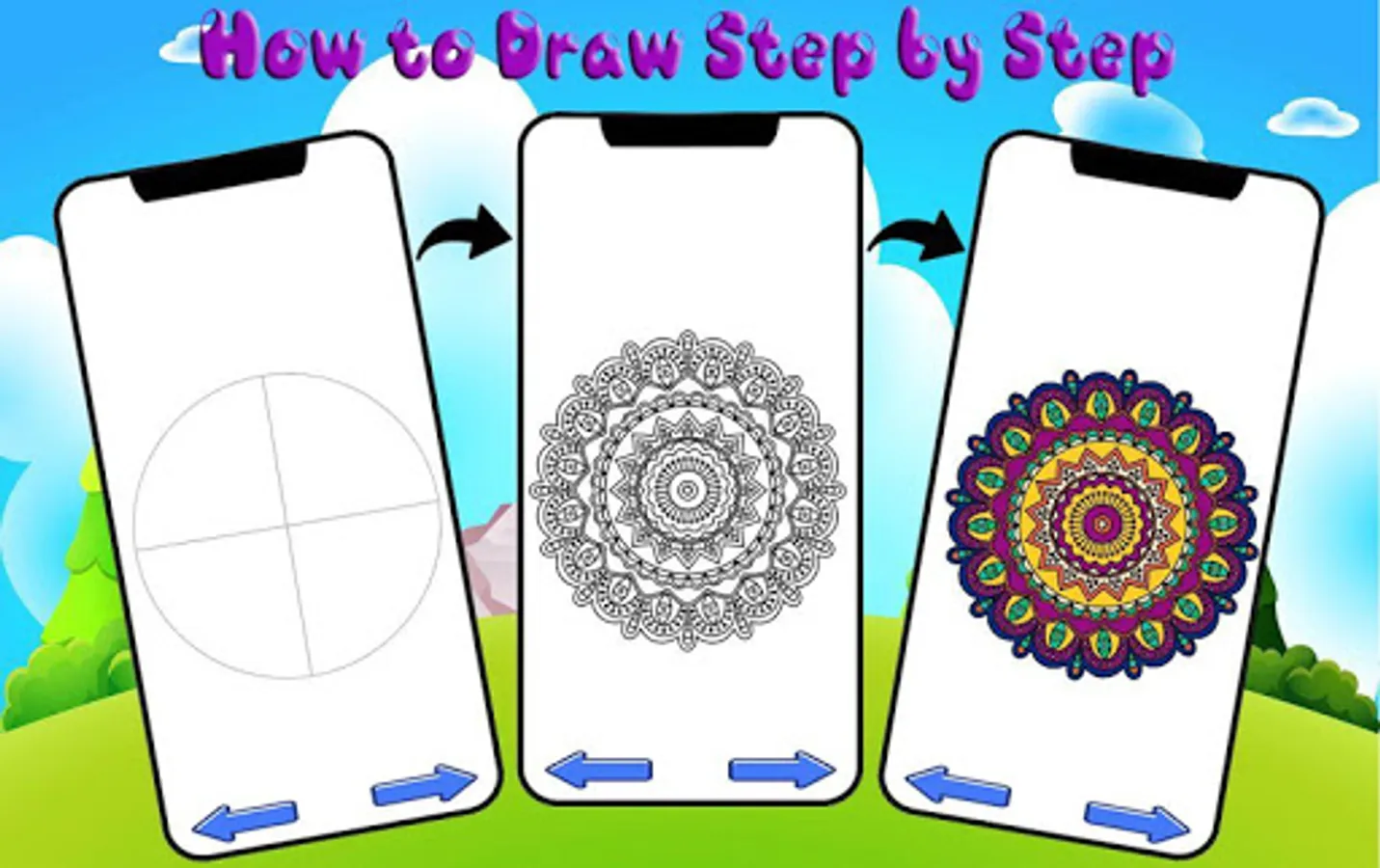 How to draw mandala is fun-packed one that you will certainly enjoy. Wide categories are there for learning easy drawing like Fish, Nail Art, Super Heroes, Fruits, Butterfly, Dress, Birds, Hairstyle, Anime Eyes, etc. Under each categories you will get to learn multiple drawing figures by following different drawing lessons. Tricks to learn to draw mandala step by step will be easy with this how to draw easy application.