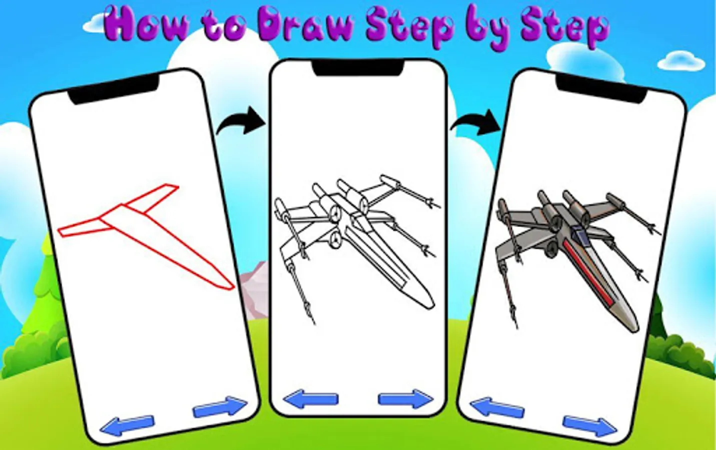 All spaceships drawing lessons are completely free. Just install the application, select any spaceships you like and learn to draw.