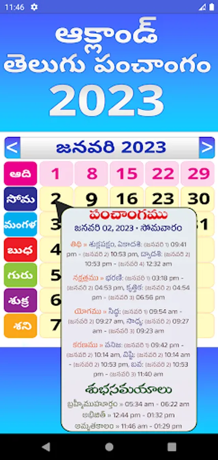 **** Telugu Daily Panchangam 2023 For auckland Telugu People Because its New Zealand Time Base.