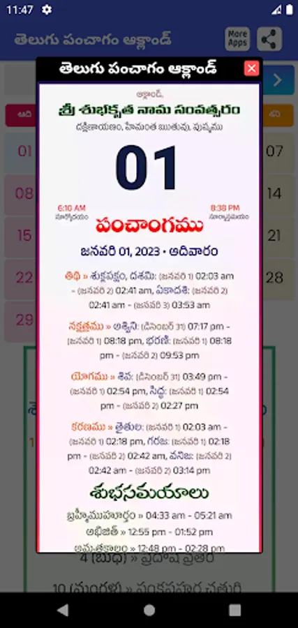 2023 complete Year and each month Each Day Full Day pachagam avilabel . Just open the App automatically Pop up the Same Day Pachangam For Better planning the Day
