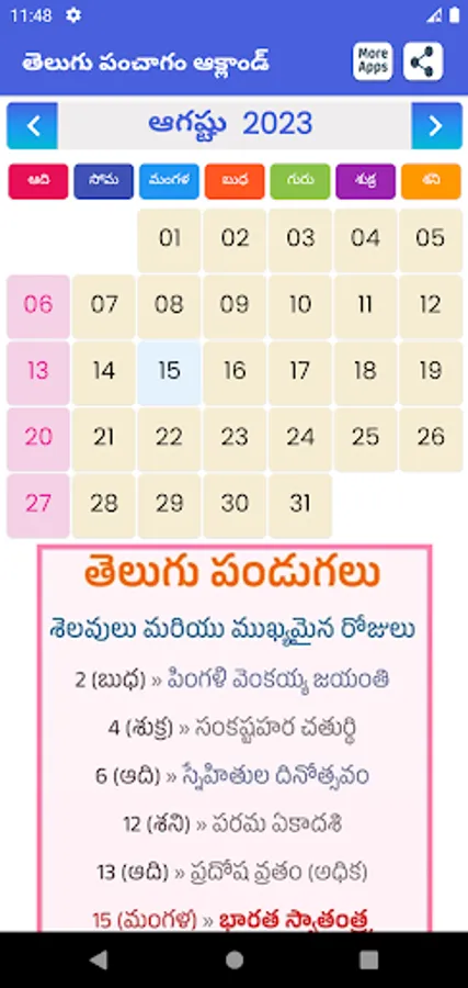 Telugu Daily Panchangam 2023 is more information available & its Offline Once Download data offile also you can use no internet requed.