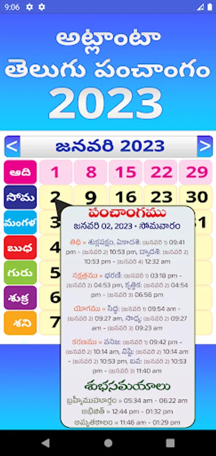 **** Telugu Daily Panchangam 2023 For united states Telugu People Because its Atlanta Time Base.