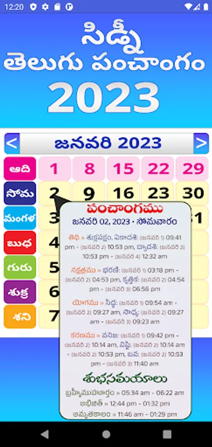 **** Telugu Daily Panchangam 2023 For Australia Telugu People Because its Sydney Time Base.