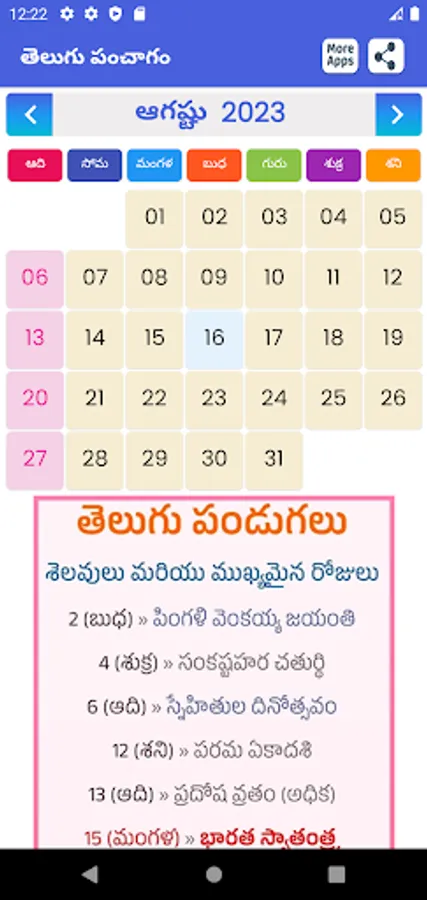 2023 complete Year and each month Each Day Full Day pachagam avilabel . Just open the App automatically Pop up the Same Day Pachangam For Better planning the Day