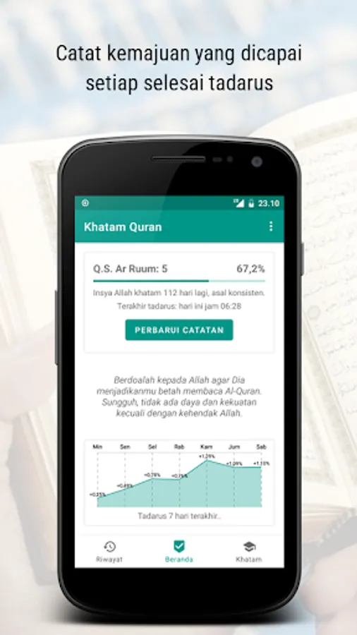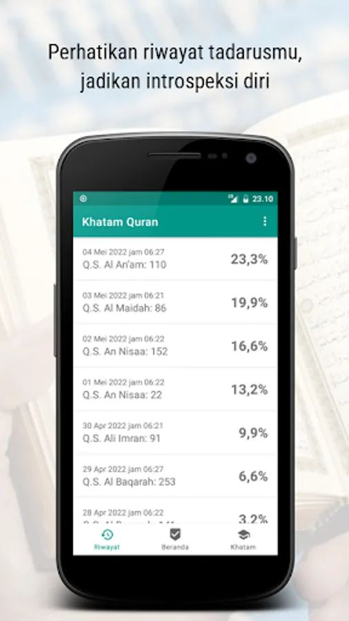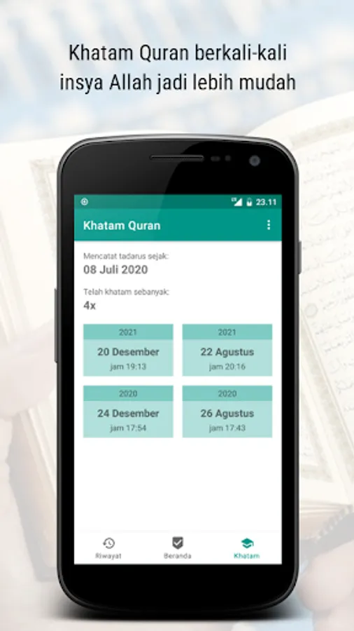 This Khatam Quran application was developed with one goal: to help achieve the dreams of every Muslim above. With this application, you can record the progress you have made after each completion. You can also see an estimate of the Khatam Quran. Then ask yourself, is that maximal?