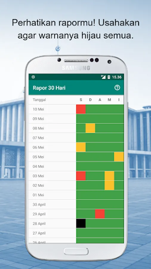 After each prayer, don't forget to note it! So you can see your prayer report card ... If the report comes out, there are lots of yellow and red colors, which means you have to fix your prayer immediately. Try to make your report cards all green, with the way you always pray at the beginning of time. Because there is a hadith that reads: