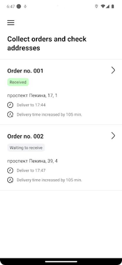 Mobile App for inDrive Delivery Couriers. The App helps couriers to deliver orders, run order statuses and confirm delivery steps. It also has additional features such as tutorials and tests, shift schedule and daily statistics.