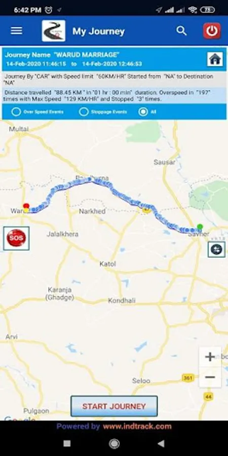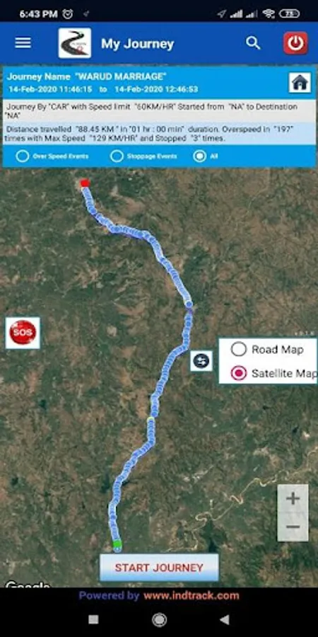 # SOS It works as well if your journey not enable. It enables GPS on your prior permission and start the journey.