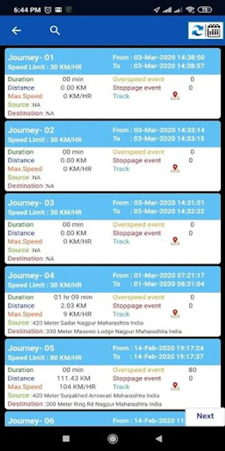 # PAST JOURNEY TRACKS MyJourney App stores all your past journey Tracks , which details available on Home Screen as well in side navigation menus. You can click on your past journey and it display your past journey track with all details.