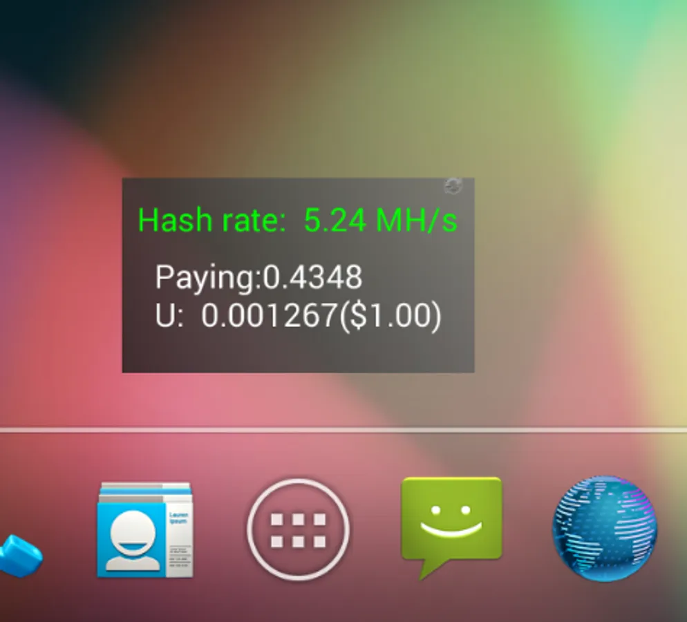 The widget has two sizes: a 2x1 and a 1x1 widget that shows the hash rate only