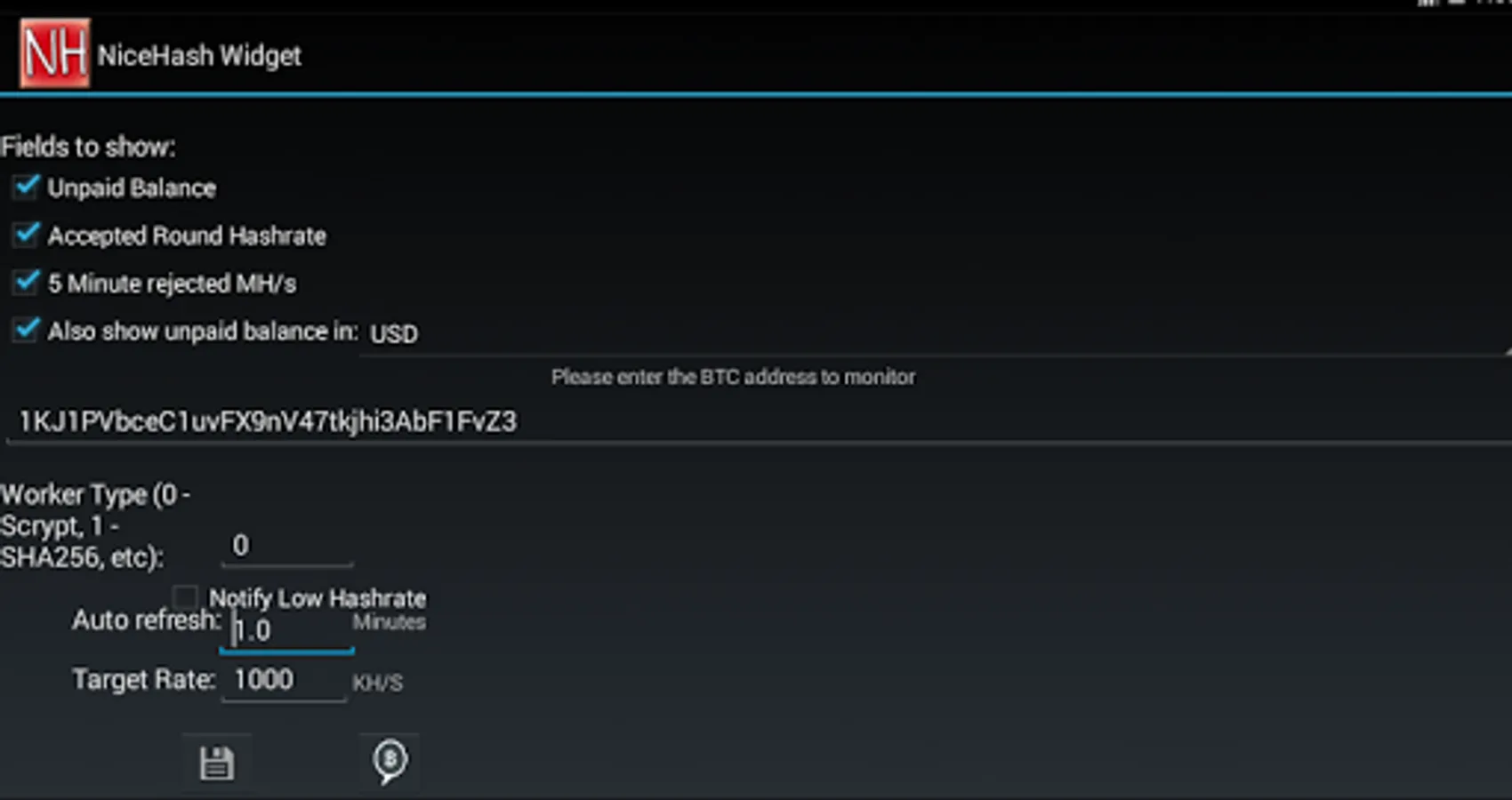 Unofficial widget to monitor your current statistics on NiceHash.com and WeshHash.com, the first real crypto currency cloud mining service.