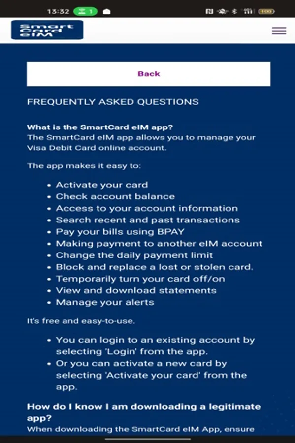 The SmartCard eIM App is designed to help you manage your money when it suits you. You can: