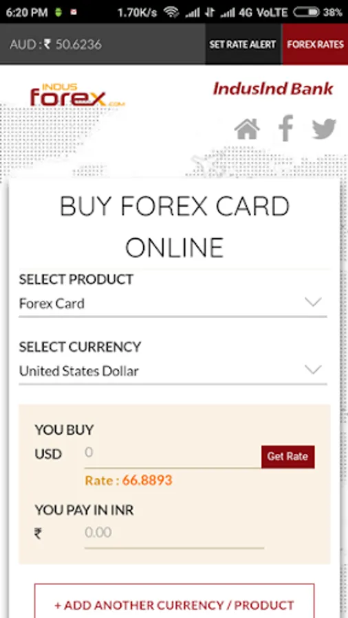 Forex Card: USD (US Dollar), EUR (Euro), GBP (British Pound), AED (UAE Dirham), AUD (Australian Dollar), CAD (Canadian Dollar), SGD (Singapore Dollar), SAR (Saudi Riyal)