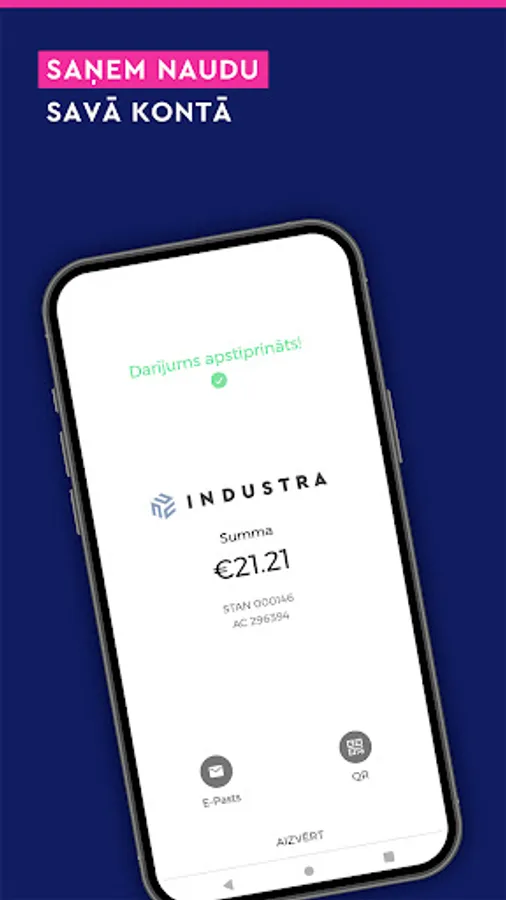 Installing the app requires a smartphone with an Android operating system (Android 9 or newer) that supports NFC technology, a contract with Industra Bank, as well as an Internet connection.