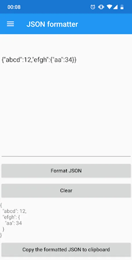 You enter (type or copy-paste) a JSON string in a text editor field, press button, and the tool shows you the formatted (un-minified) version of the JSON string you entered. Then you can copy this formatted version to clipboard.