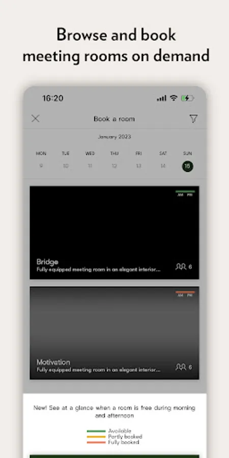 The Industrious mobile app is an easy-to-use central location for members to book meeting rooms, desks, manage upcoming reservations, and much more.