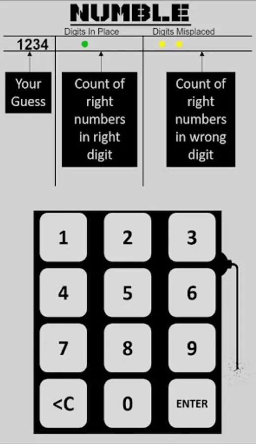 In this exciting puzzle game, you must use your deductive skills to guess a 4-digit number before the bomb explodes! With 10 chances to guess, you must rely on the clues provided after each attempt - green dots represent correct numbers in the correct place, while yellow dots show the number of correct digits in the wrong place. Can you crack the code and save the day?