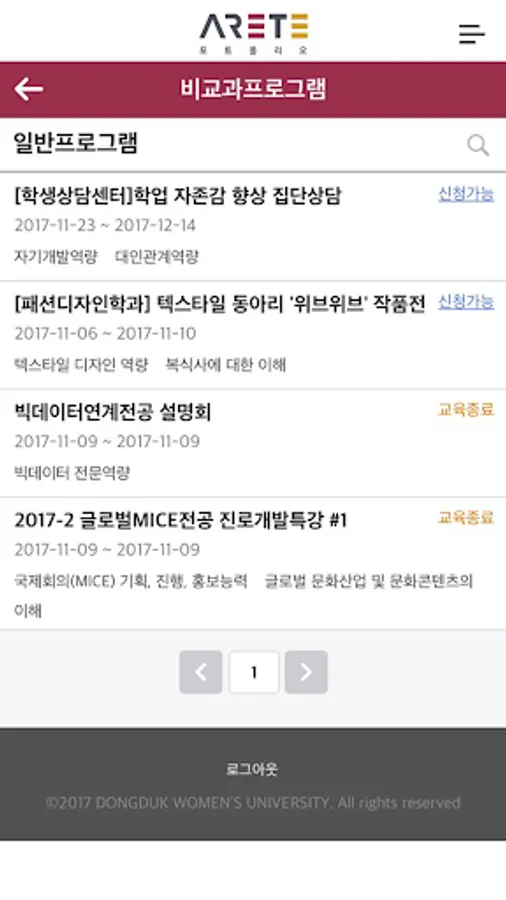 We Dongduk Women's University to achieve the educational goals of the university and provides students with an excellent education process, building ARETE competency-based education system, and an organic and systematic management with each department and this department. Students will be able to grow into major courses, literacy courses, ARETE-type talent, and through each of the courses and programs developed major capabilities and core competencies, and ultimately implies the educational goals of the Women's University of Dongduk Compare & Save curriculum.