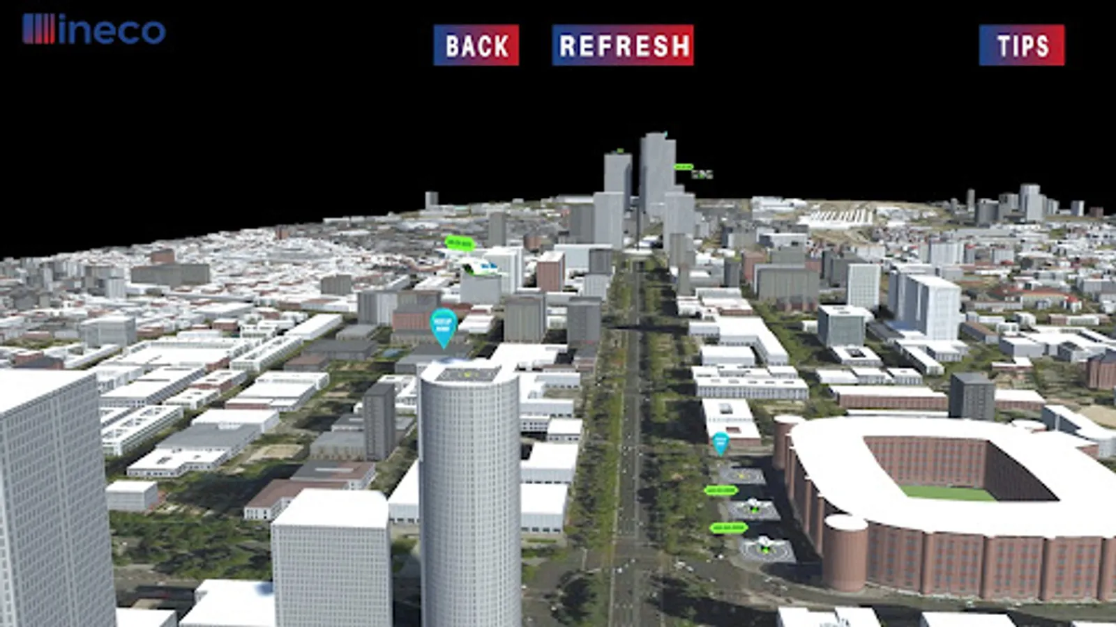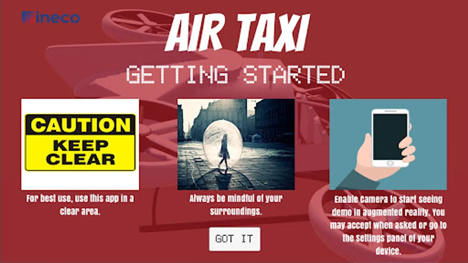 Air taxi flight and vertiport simulation. You could see in AR mode the air taxi operation between two pick up points and the vertiports in many locations.