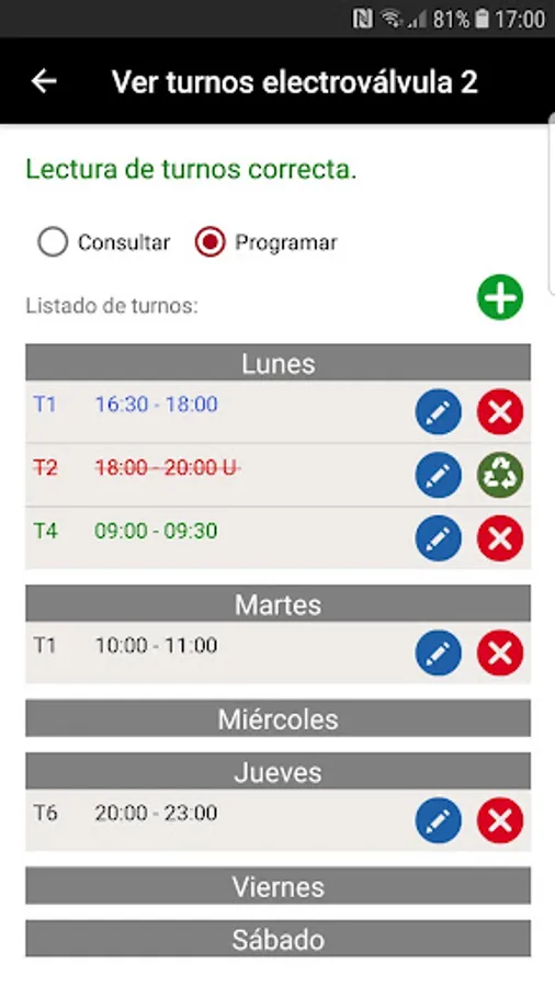 - Consultation and programming of irrigation shifts in the solenoid valves.