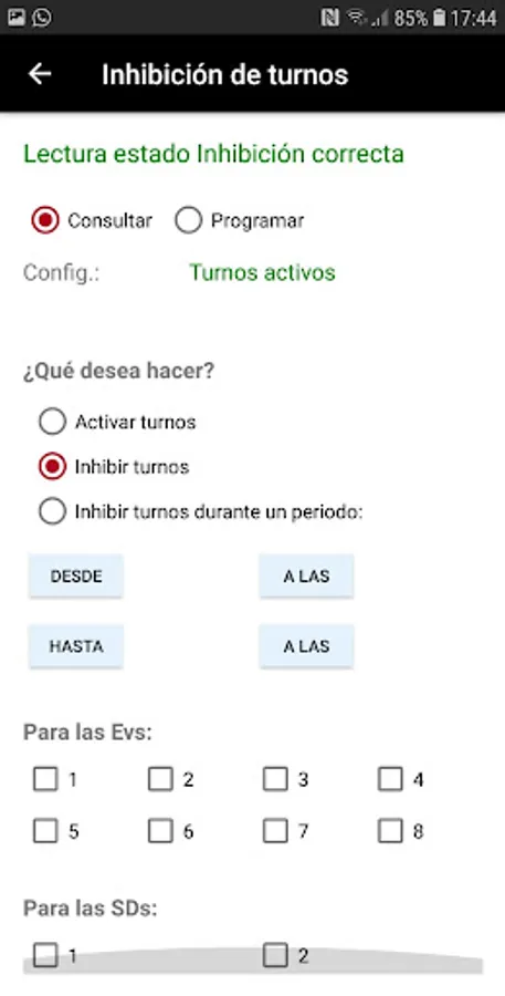 - Consultation and modification of the shift inhibition status. Allows them to be inhibited for a period or indefinitely.