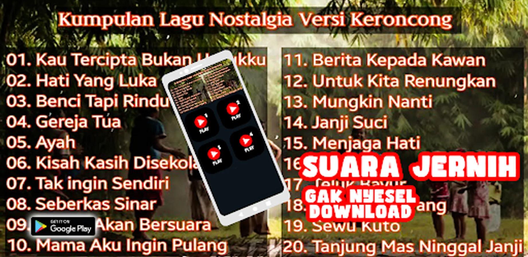 This Keroncong Kenangan Mp3 song contains a complete collection of old and modern kerocong songs, which have clear sound quality with cool playlists.