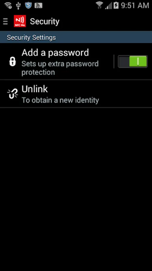 The NFC Me+ application creates a secure ID (element) using the NFC technology of a device.