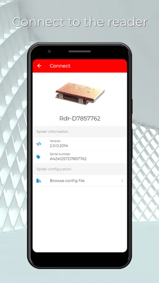 Connect and configure your Spider RFID reader using Bluetooth Low Energy (BLE). Check the RFID reader version, configuration and upload a new configuration.